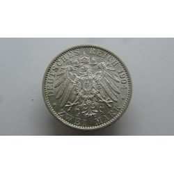 Vokietija, Meklenburgas-Šverinas 2 markės 1904 m. Proginė sidabrinė moneta, išleista vestuvių proga. Friedrich Franz IV valdymo laikotarpis (1897-1918)