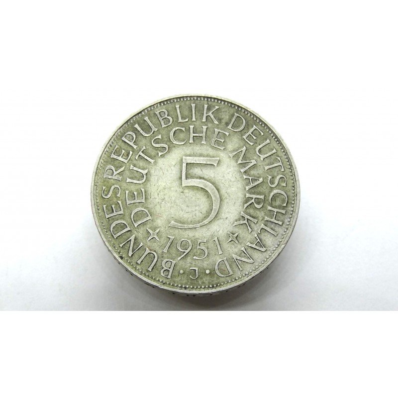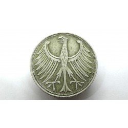 Vokietijos Federacinė Respublika VFR 5 markės. Sidabras 625. Sidabrinė apyvartinė moneta, leista nuo 1951 iki 1974 metų.