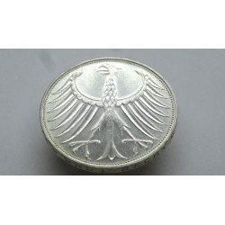 Vokietijos Federacinė Respublika VFR 5 markės. Sidabras 625. Sidabrinė apyvartinė moneta, leista nuo 1951 iki 1974 metų.